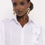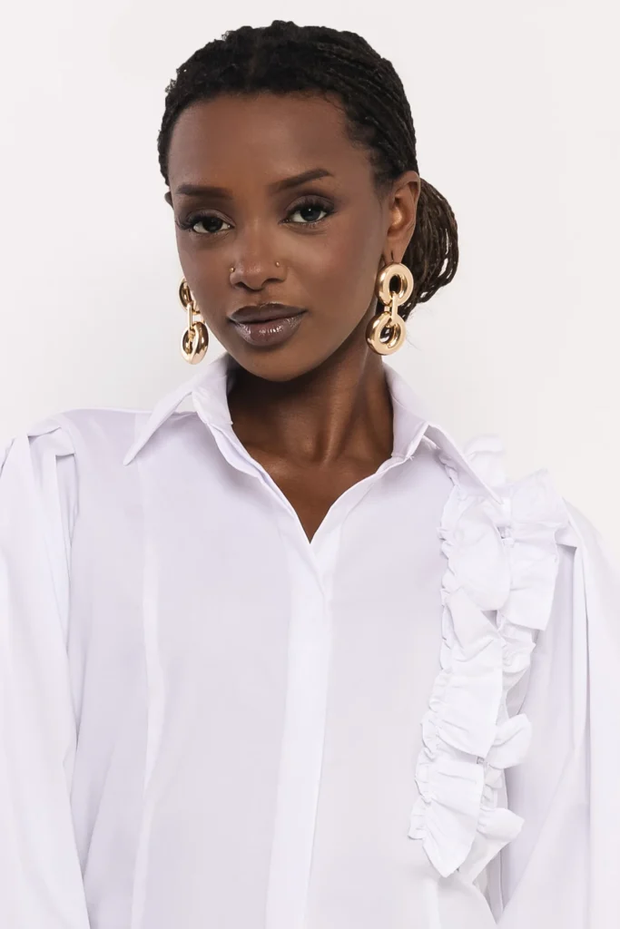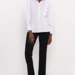 Az AMNESIA Boston blúz klasszikus gallérja és finoman puffos ujja időtlen sikket sugall, míg az aszimmetrikus, fodrokkal díszített vállrész játékos, mégis kifinomult részlet, amely különlegessé teszi a darabot. A puplin anyag könnyed tartást ad, miközben egész nap kellemes viseletet biztosít.