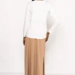 A Calabri felső ekrü, vaj és kávé árnyalatban elérhető, így könnyen beilleszthető a mindennapi és az alkalmi szettekbe is. A természetes pamut anyag légáteresztő és kényelmes, ezért ideális választás hosszú napokra, amikor fontos a stílus és a komfort harmóniája.