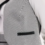 A szürke-fekete csíkos minta játékosságát a letisztult vonalvezetés ellensúlyozza, így egyszerre hordható irodai környezetben vagy trendi hétköznapi szettben is. Az AMNESIA Kori szoknyával együtt tökéletes szettet alkot, de más alapdarabokkal kombinálva is stílusos választás.