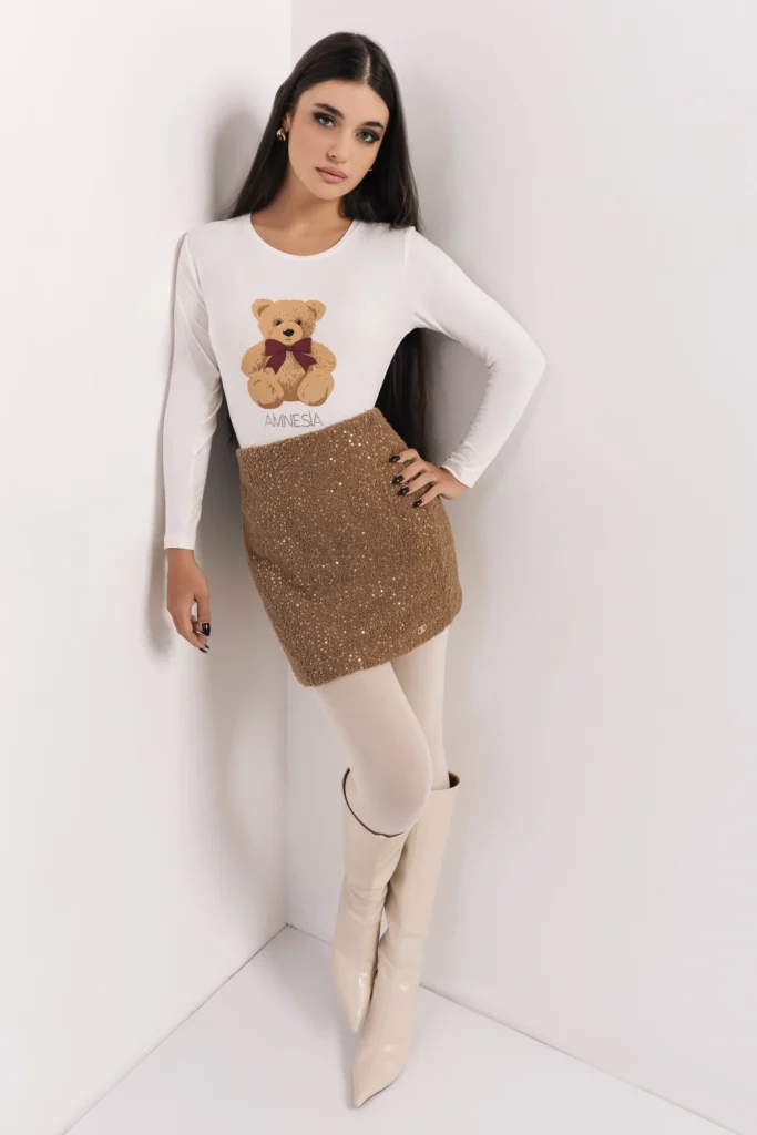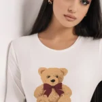 Jó tartású, kellemes viszkózból készült egyméretes fazon, amely szépen simul a testre, de nem tapad rá. A mackós grafika finoman domborodik, így a felső egyszerre különleges és modern, igazi téli kedvenc.