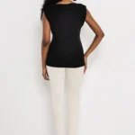 Vékony punto anyagból készült, amely puha tapintású, rugalmas és kényelmesen követi a test mozgását. A deréknál kialakított szabás finoman hangsúlyozza az alakot, az alsó rész enyhe bővülése pedig nőies esést ad. Fekete és bézs színben érhető el, egyméretben, hogy megtaláld a számodra legjobbat.