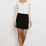 A viszkóz alap puha esésű, a csipke pedig légies hatást ad a darabnak, így viselés közben könnyű és kellemes érzetet nyújt. A fazon nem feszes, mégis szépen simul a felsőtesten, az ujjrész pedig mozgás közben is kényelmes marad. Egyméretben készül, az anyag rugalmassága miatt több alkaton is jól működik.