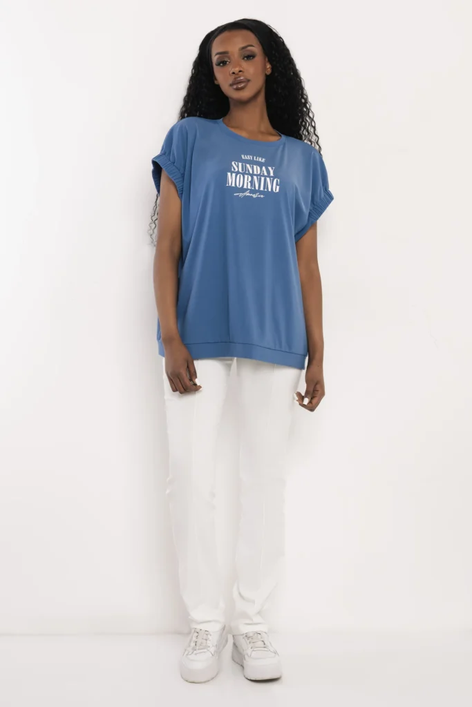 Az AMNESIA Fresa bőfelső egy laza, mégis stílusos darab, amely a feliratos dizájnjával és gumírozott ujjával válik igazán különlegessé. Tökéletes választás, ha egy kényelmes, mégis trendi felsőt keresel.