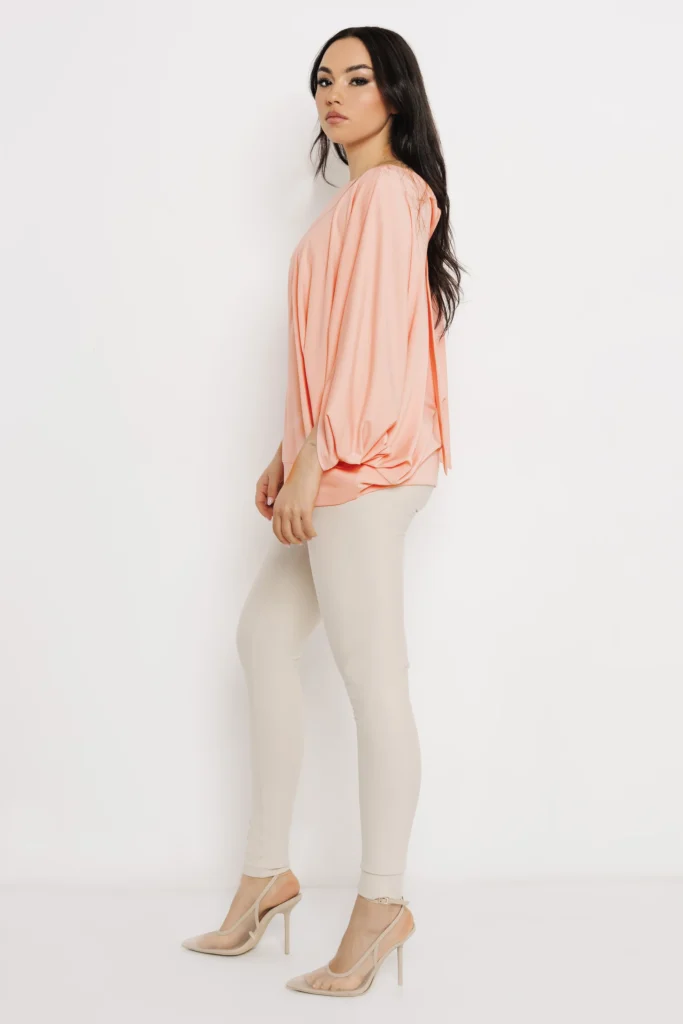 Az AMNESIA Habiba felső laza, mégis stílusos választás a hétköznapokra. A logómintás fekete, a barack és a tojás színváltozat is könnyen kombinálható, miközben különleges szabásával kitűnik az alapdarabok közül.