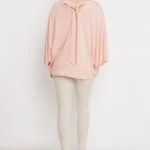 Kimo és vékony punto anyag kombinációjából készült, amely puha tapintású és rugalmas. Az egyméretes, bővebb fazon kényelmesen illeszkedik, az alsó passzés rész pedig keretet ad a sziluettnek.