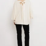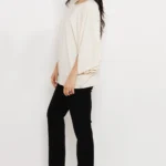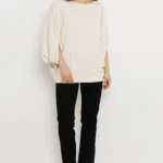 Kimo és vékony punto anyag kombinációjából készült, amely puha tapintású és rugalmas. Az egyméretes, bővebb fazon kényelmesen illeszkedik, az alsó passzés rész pedig keretet ad a sziluettnek.