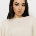 Az AMNESIA Habiba felső laza, mégis stílusos választás a hétköznapokra. A logómintás fekete, a barack és a tojás színváltozat is könnyen kombinálható, miközben különleges szabásával kitűnik az alapdarabok közül.