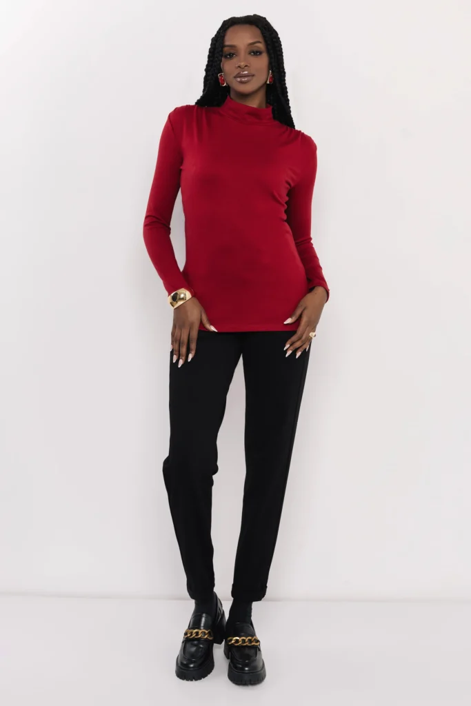 Az AMNESIA Ilus felső vékony kötött anyagból készült, így tökéletesen rétegezhető a szezon lookjaiban. Letisztult, állónyakú fazonja optikailag nyújtja a nyakat, míg a finoman testhezálló szabás nőies sziluettet ad. Több színben elérhető – fekete, fangó, csokibarna, bordó és szürke –, így minden stílushoz megtalálod a tökéletes árnyalatot.