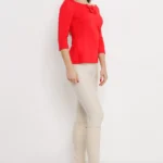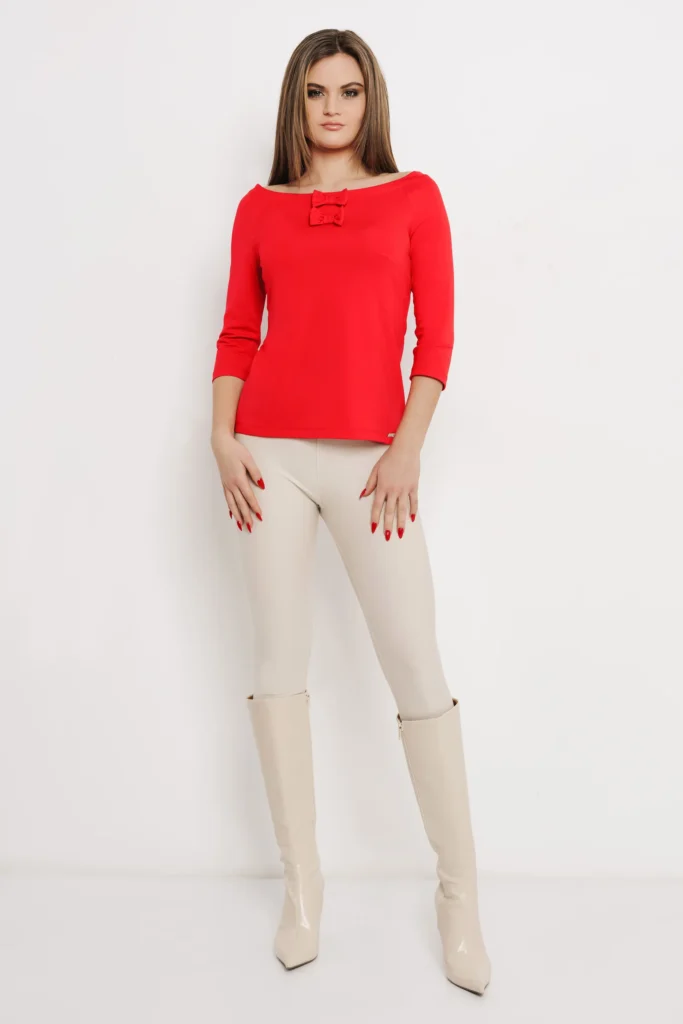 A vékony punto anyag könnyű, rugalmas és kellemes tapintású, így egész napos viselet során is komfortos. A szabás követi a felsőtest vonalát, mozgás közben nem feszül. Egyméretes kialakításban készül, piros és fekete színben.