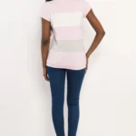 Viszkóz anyaga puha, jól szellőzik és szépen követi a mozgást, így komfortos viselet egész nap. Egyméretes fazonban kapható sárga-ekrü-szürke és rózsaszín-ekrü-szürke színekben.