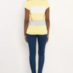 Viszkóz anyaga puha, jól szellőzik és szépen követi a mozgást, így komfortos viselet egész nap. Egyméretes fazonban kapható sárga-ekrü-szürke és rózsaszín-ekrü-szürke színekben.