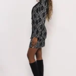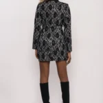 A fénylő szatén és a látványos csipke kombinációja egyedi textúrát ad, miközben a galléros, hosszított fazon klasszikus alapokra épít. A gondos szabás optikailag nyújtja az alakot, a csipkeminta pedig finom, mégis határozott stílust sugároz.