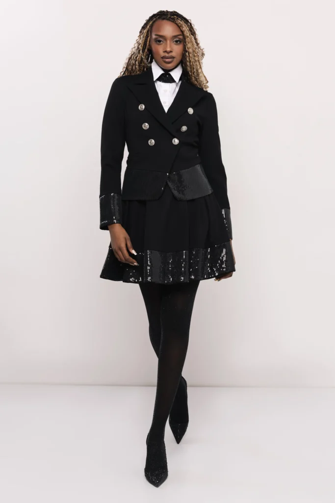 Az AMNESIA Flitter zakó igazán különleges darab: elegáns, nőies, pont olyan, amit szívesen veszel fel, ha egy kicsit jobban szeretnéd odatenni magad. A fekete alapot a csillogó flitterek és a jellegzetes gombsor teszi izgalmassá, miközben a fazon nőies és letisztult marad.
