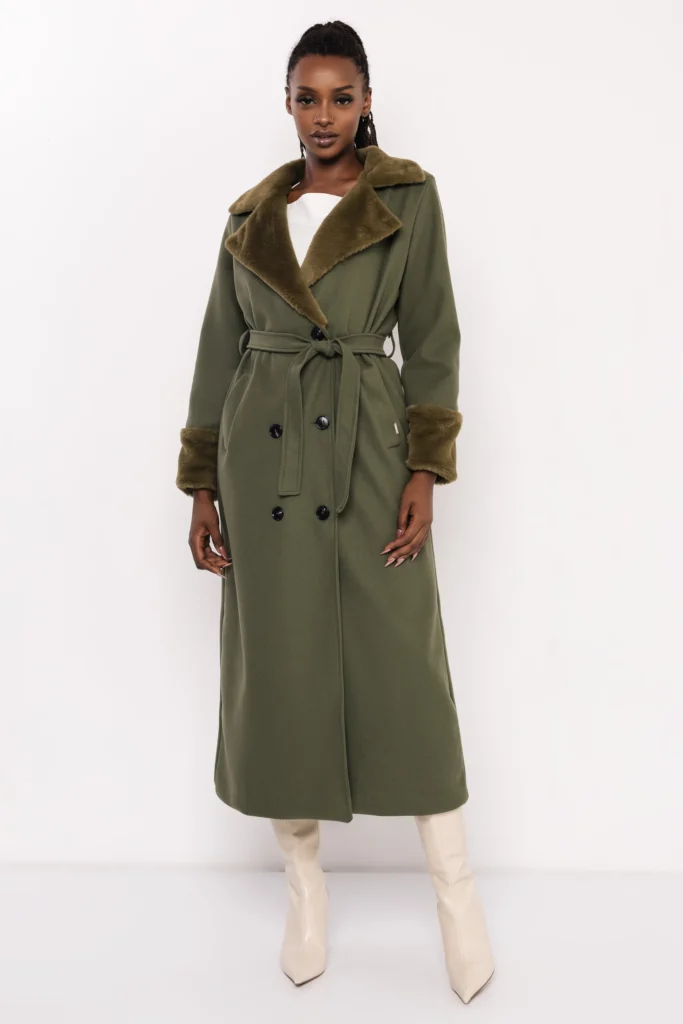 Vaj, fekete, barna és khaki árnyalatban elérhető, így mindenki megtalálhatja a saját kedvencét. A szabásvonalak és a prémes részletek elegáns, mégis lezser hatást keltenek, amely tökéletes a városi, modern nő gardróbjába.