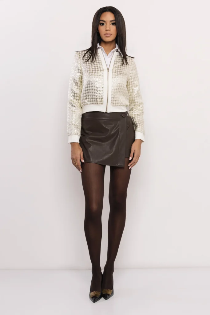 Styling tipp: viselheted elegáns szoknyával, bőrnadrággal vagy akár egy visszafogott ruhával is – mindenhez hozzáteszi a maga finom csillogását. Ha egy olyan alkalmi felsőt keresel, ami a hétköznapokban is megállja a helyét, az AMNESIA Zura dzseki szerelem lesz