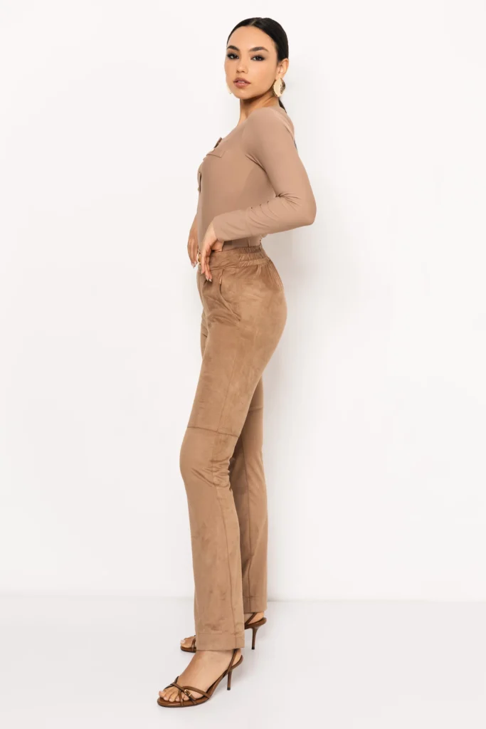 Az AMNESIA Fitto nadrág a letisztult stílus és a kényelem találkozása, amely a velúr puha tapintásával és időtálló camel színével minden szezonban tökéletes választás. Modern, mégis klasszikus vonalvezetése kiemeli az alakot, miközben elegáns megjelenést kölcsönöz.