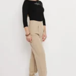 A twist szövet tartást ad a nadrágnak, ugyanakkor kényelmes egész nap. Az alján gumírozott passzé praktikus és jól formálja az összhatást. S-XL méretekben érhető el, fekete és bézs színben.