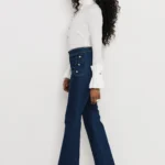 Az AMNESIA Tullia nadrág egy olyan farmer, ami lágyan formálja az alakot és magabiztos megjelenést ad. Magas derekú kialakítása szépen kiemeli a derekat, az enyhén bővülő szár pedig optikailag nyújtja a lábakat. Az arany gombos zsebrészletek különlegessé teszik, miközben a fazon végig letisztult marad.