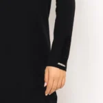 A ruha különlegességét a vállon és az ujjak végén található finom ráncolt díszítés adja, amely játékos, mégis visszafogott részletként emeli ki a darabot. Egyenes vonalvezetése univerzális megoldás, amely többféle alkaton is szépen mutat, az egyméretes fazon pedig biztosítja a kényelmes illeszkedést.
