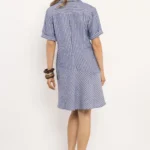 Lenvászon anyaga természetes, légies és jól szellőzik, így ideális nyári viselet. Egyméretes kialakításban érhető el kék csíkos változatban.