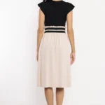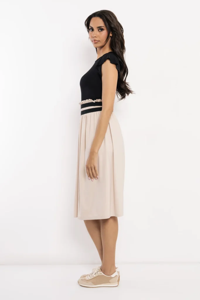 Az AMNESIA Monro ruha egy elegáns, könnyen viselhető darab, amely a kontrasztos színvilágával és a nőies szabásával válik igazán különlegessé. A letisztult felsőrészt szépen egészíti ki az alsó rész lágy esése, mely finoman mozog viselés közben.