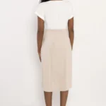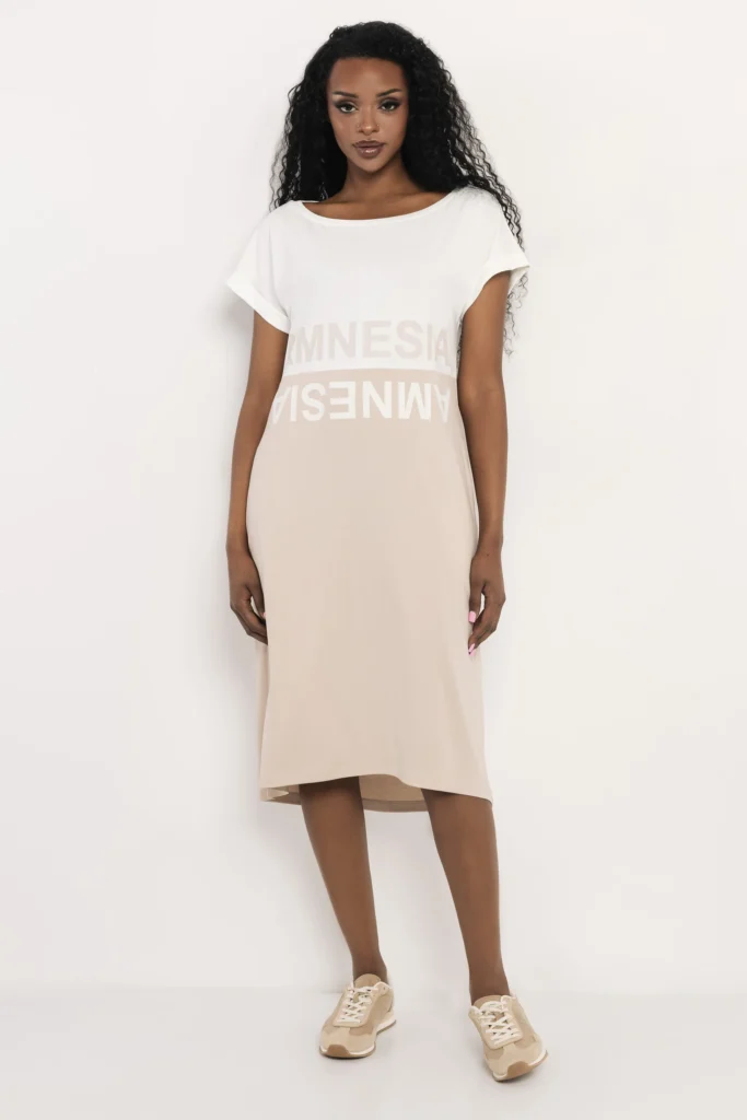 Az AMNESIA Noni ruha egy letisztult, modern darab, amely a minimál stílust egy különleges színblokkolással teszi izgalmassá. A lazább szabás és az aszimmetrikus vonalvezetés friss, könnyed megjelenést ad.