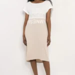 Az AMNESIA Noni ruha egy letisztult, modern darab, amely a minimál stílust egy különleges színblokkolással teszi izgalmassá. A lazább szabás és az aszimmetrikus vonalvezetés friss, könnyed megjelenést ad.