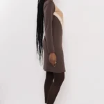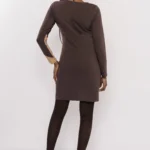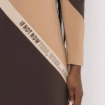 A Nox ruha játékos színkombinációval azonnal magára vonja a figyelmet. A csoki, camel és bézs tónusok átlós elrendezése karcsúsítja a sziluettet, miközben lendületet visz a megjelenésbe. A pamut anyag puha és rugalmas, így egész nap kényelmes viselet marad.