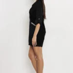 Az AMNESIA Penta ruha sportos, mégis nőies darab, amely a rövidebb fazonnal és a praktikus zsebekkel kényelmes választás a mindennapokra. Letisztult fekete színe miatt könnyen kombinálható, és önállóan is jól mutat.