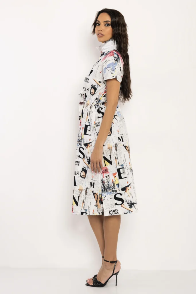 Laza elegancia hétköznapokra – ez a puplin anyagból készült AMNESIA Tabdi ruha igazi jolly joker a gardróbodban. A galléros fazon, a végig futó gombok és a megkötős derékrész egyszerre adnak strukturált és nőies karaktert, miközben a könnyed szabás és az oldalsliccek a kényelmet is garantálják.