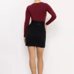 A szövetanyag tartósságot és tartást ad a szoknyának, miközben elegáns megjelenést kölcsönöz. A rövid fazon sokoldalúan kombinálható, így egyaránt illik csizmához, magassarkúhoz vagy akár sportcipőhöz is.
