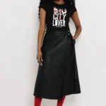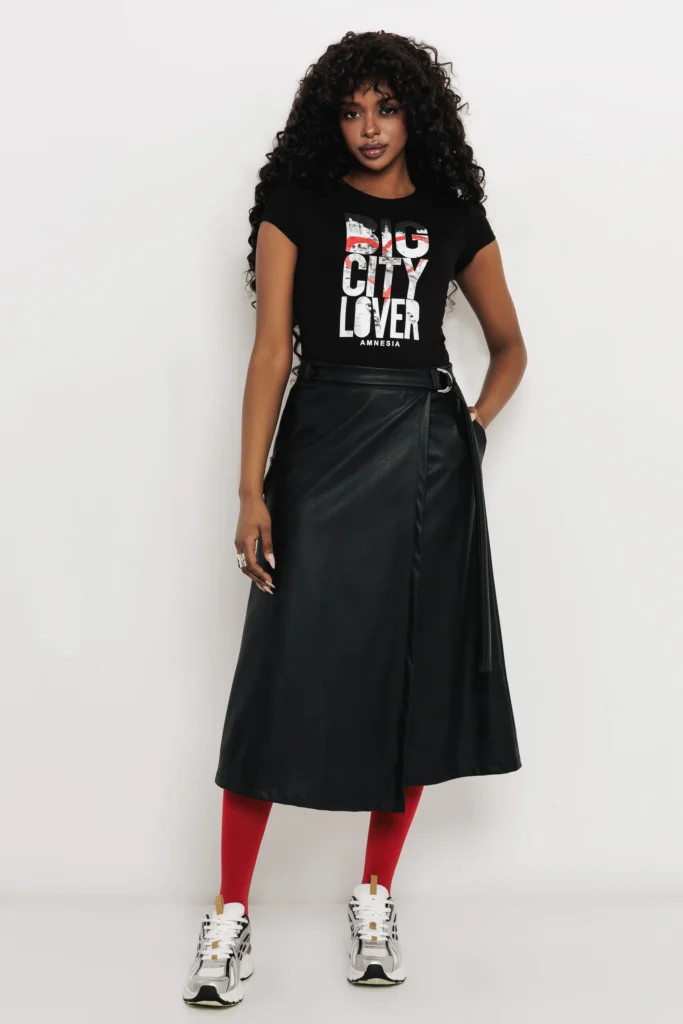 Az AMNESIA Febin szoknya szuper választás, amely modern, karakteres megjelenést ad. A fekete szín és a különleges felület magabiztos stílust közvetít, így könnyen a szett fókuszpontjává válik a tavaszi ruhatáradban.
