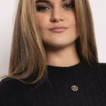 A modell magassága 174 cm és S-es méretet visel. A modell méretei: mell – 88 cm, derék – 62 cm, csípő – 92 cm.