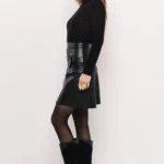 A puha műbőr anyag látványos, mégis kényelmes, szépen tartja a szoknya formáját, a gombos részlet pedig plusz hangsúlyt ad. S és M méretben érhető el, fekete színben, amely bármilyen felsővel jól kombinálható.