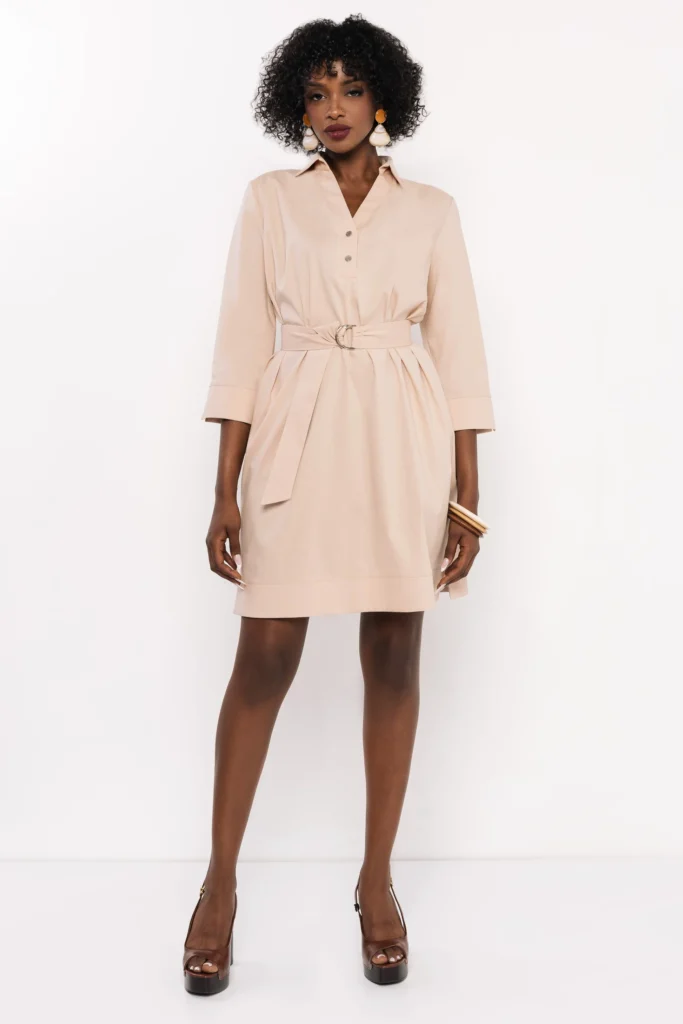 Az AMNESIA Bajkál tunika a klasszikus ingfazont gondolja újra nőies és modern formában. Puplin anyaga könnyed és légies, így kényelmes viselet egész nap, miközben szépen tartja a fazont. A gombos nyakkivágás elegáns részlet, a derékban megkötős öv pedig kiemeli a sziluettet és játékos variálhatóságot ad. Fekete és homok színben elérhető, két méretben (S-M, L-XL), így könnyen megtalálhatod a hozzád leginkább illő változatot. Praktikus zsebei és a háromnegyedes ujjrész mind hozzájárulnak ahhoz, hogy ez a tunika a stílus és a funkcionalitás tökéletes egyensúlyát adja. Egy sokoldalú darab, amelyet hordhatsz önmagában tunikaként vagy legging-szel kombinálva is.