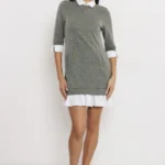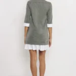 AMNESIA Vezin ruha a tavaszi kollekció egyik legkülönlegesebb darabja, ahol a sportos és az elegáns részletek találkoznak. A szürke futter alapot ekrü puplin gallér és alsó rész egészíti ki, ami friss, rétegezett hatást ad.